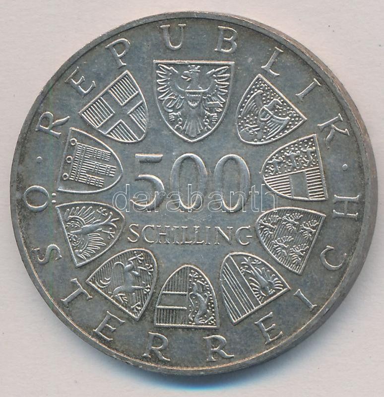 Austria 1987. 500 Schilling Ag "800th Anniversary - Holy Cross Church" C:AU,XF patina