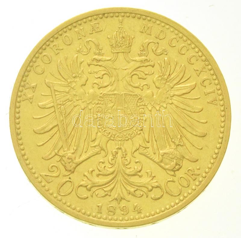 ... https://www.darabanth.com/hu/324-Gyorsarveres/324.0/Numizmatika/Magyar-es-kulfoldi-aranypenzek-es-emlekveretek~2500011/Ausztria-1894-20K-Au-Ferenc-Jozsef-6-76g0900-T1-2--Austria-1894-20-Corona-Au-Franz-Jose~II1799946