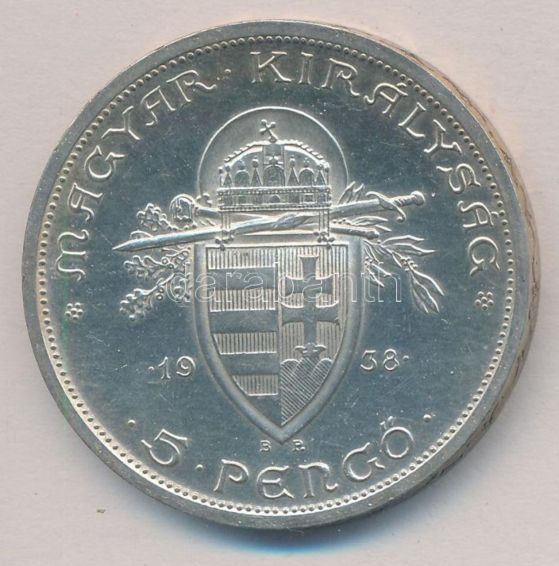 Leírás: 1938. 5P Ag "Szent István" T:1-,2 patina