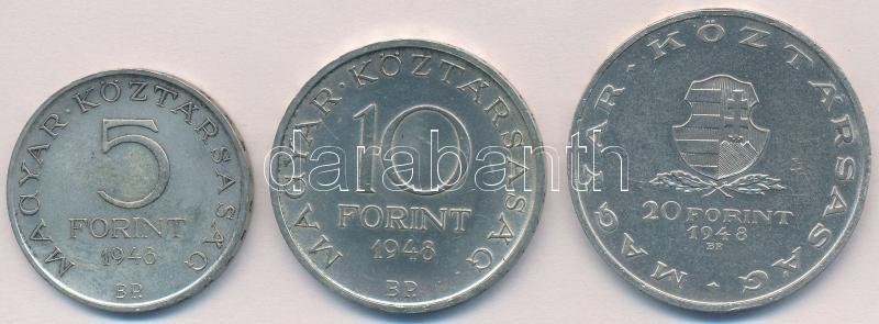 Leírás: 1948. 5Ft Ag "Petőfi" + 10Ft Ag "Széchenyi" + 20Ft Ag "Táncsics" - "Szabadságharc sor" T:1-,2