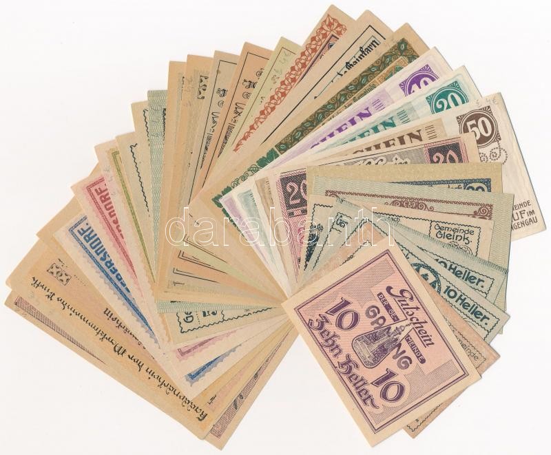 Leírás: Ausztria 1920-1921. 30db-os papír szükségpénz tétel T:I,I- Austria 1920-1921. 30pcs of paper necessity notes C:UNC,AU