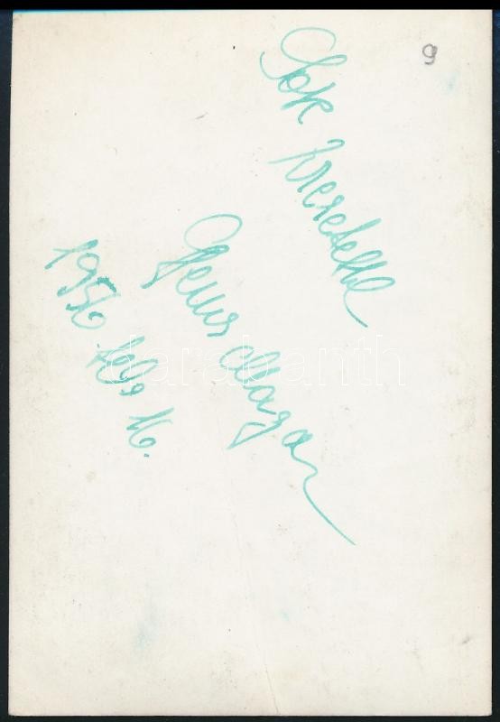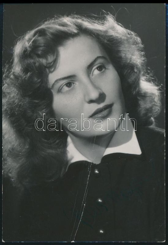Leírás: Gyenes Magda (1925- ) színésznő aláírása őt ábrázoló fotón