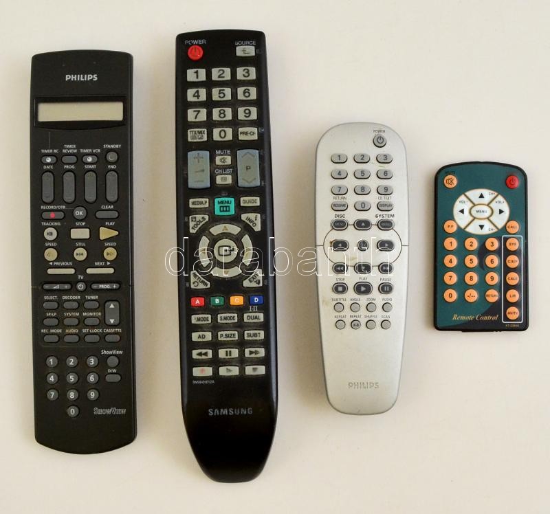 Leírás: 4 db különböző távirányító, köztük Philips, Samsung