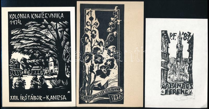 Leírás: 9 db különféle technikájú részben jelzett magyar ex libris / 9 Hungarian ex libris bookplates. Different techniques
