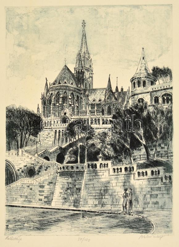 Blahos Rudolf (1917-1986): Halászbástya, rézkarc, papír, jelzett, 39×2... https://www.darabanth.com/hu/325-Gyorsarveres/325.0/Festmeny-mutargy-papirregiseg-egyeb/Festmenyek-es-grafikak~32/Blahos-Rudolf-1917-1986-Halaszbastya-rezkarc-papir-jelzett-39C39729-cm~II1791826