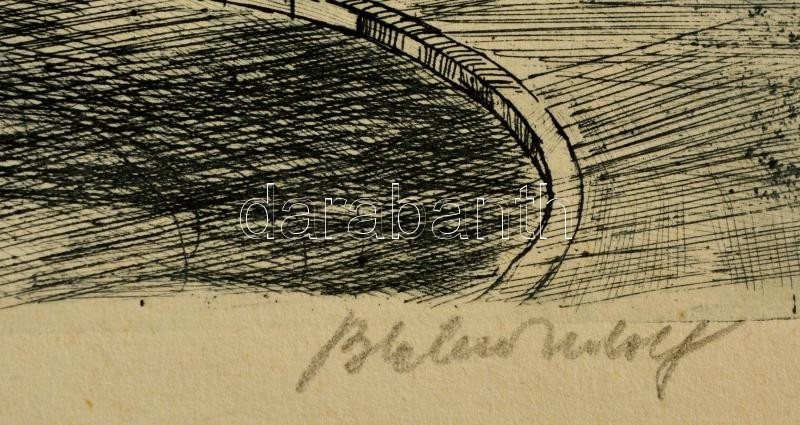 Leírás: Blahos Rudolf (1917-1986): Halászbástya, rézkarc, papír, jelzett, 39×29 cm