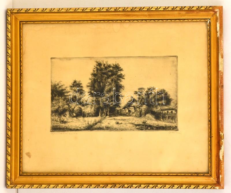 Leírás: Boldizsár István (1897-1984): Gyermekkori emlék, rézkarc, papír, jelzett, üvegezett fa keretben, 20×33,5 cm