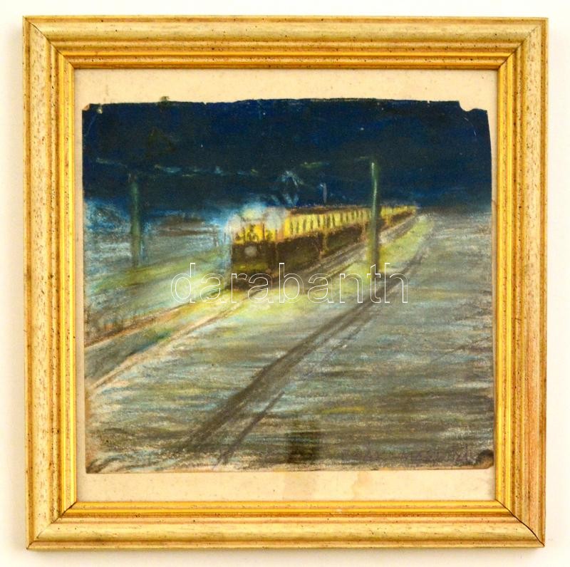 Leírás: Csáki jelzéssel: Éjszakai villamos. Pasztell papír, sérült, 16×17 cm