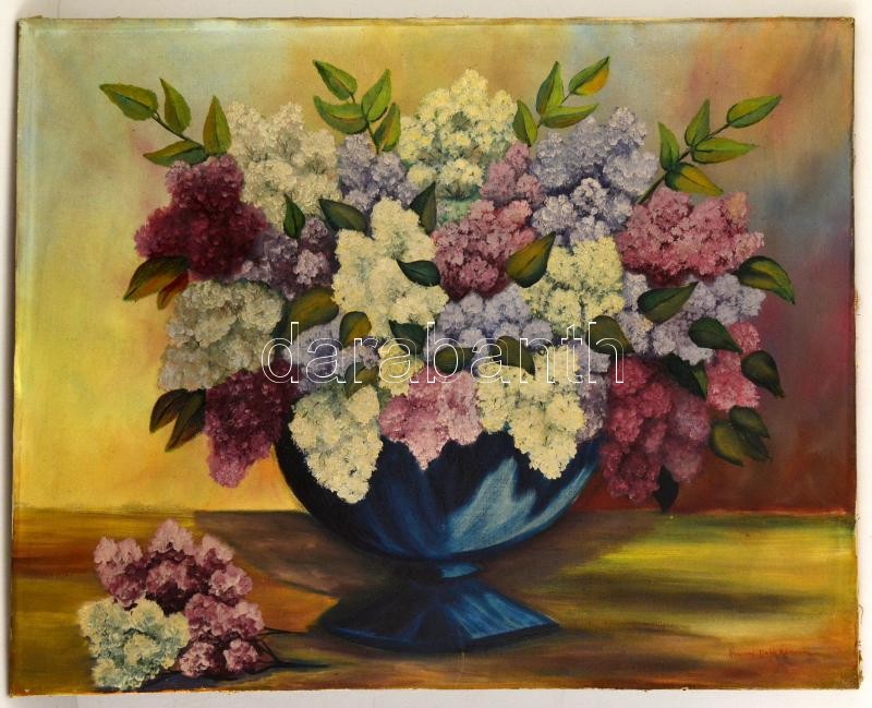 Henczné jelzéssel: Orgonás csendélet. Olaj, vászon, 71×90 cm https://www.darabanth.com/hu/325-Gyorsarveres/325.0/Festmeny-mutargy-papirregiseg-egyeb/Festmenyek-es-grafikak~32/Henczne-jelzessel-Orgonas-csendelet-Olaj-vaszon-71C39790-cm~II1795061