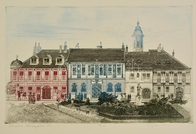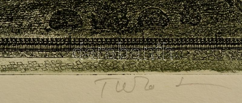 Leírás: Tuka László (1924-2007): Házak a Várnegyedben. Színes rézkarc, karton, jelzett, 25×39 cm