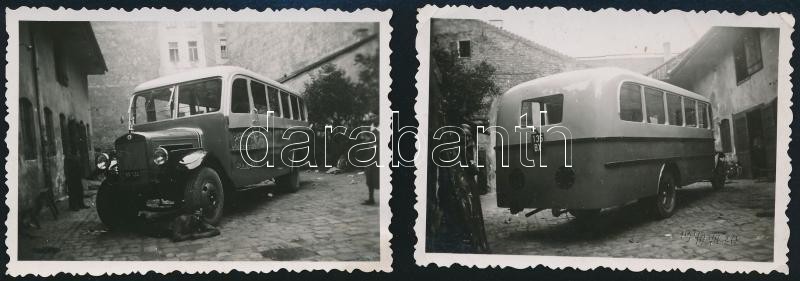 Leírás: 1940 Személyszállítás autóbusszal, Rákoshegy-Rákoskeresztúr-Budapest, 2 db fotó, egyik felületén kis törésnyomokkal, 6x8,5 cm