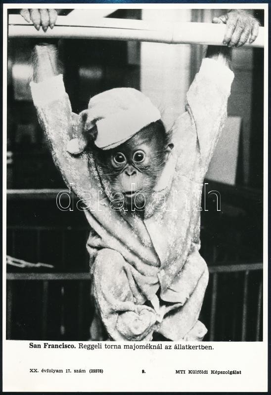 Majmokat ábrázoló MTI sajtófotók, 3 db, 19×27 cm https://www.darabanth.com/hu/325-Gyorsarveres/325.0/Festmeny-mutargy-papirregiseg-egyeb/Foto~20/Majmokat-abrazolo-MTI-sajtofotok-3-db-19C39727-cm~II1809794