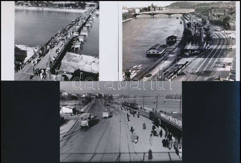 Leírás: Margit híd budai hídfőjénél és a Manci híd, különféle korokban készült felvételekről mai nagyítások, 10x15 cm