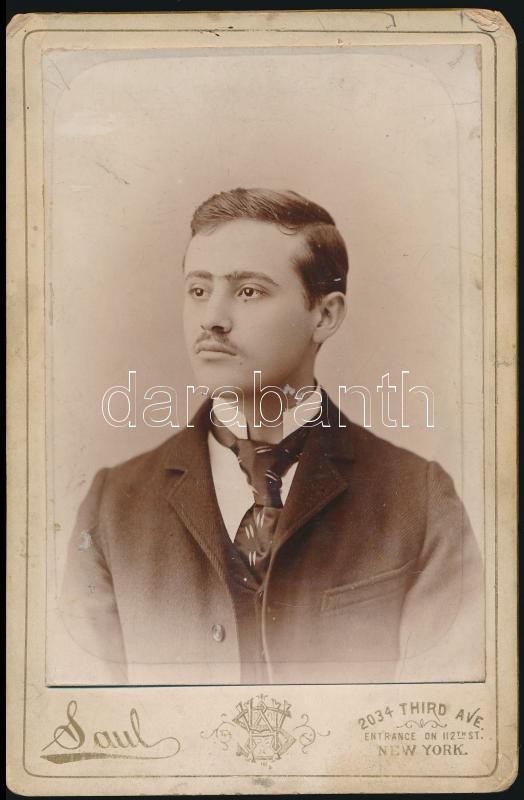 cca 1900 Portrait of a young man, Saul New York, board photo, little bit damaged, 11x16 cm.
