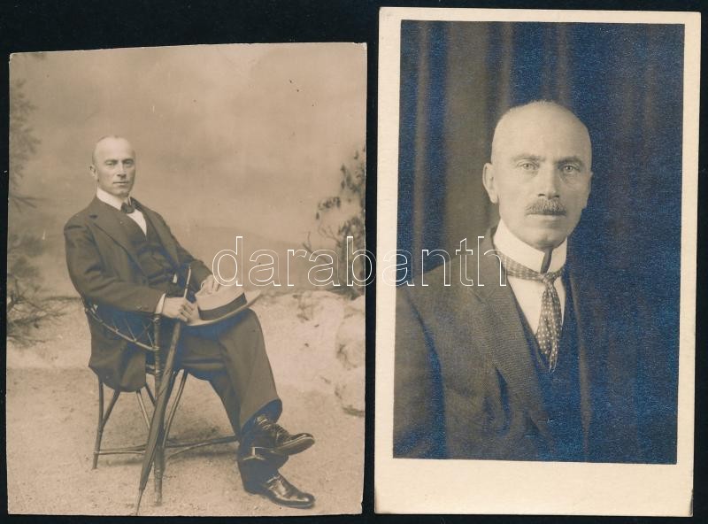 Leírás: cca 1910-1930 Gönczy Mór zonograművész, miniszteri tanácsos, majd államtitkár, 2 db fotó, az egyik fotó körbevágott, 10x6 cm és 9x7 cm.