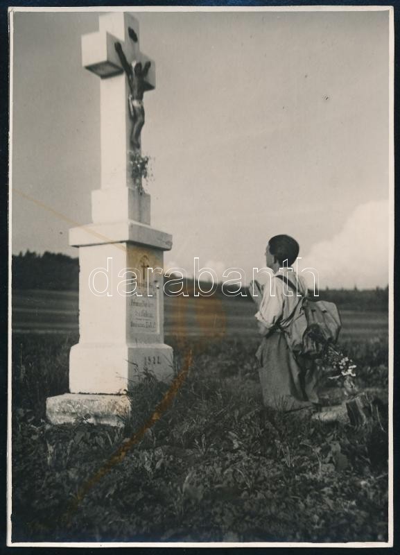 cca 1920-1940 A vándor imája, fotó, 18x13 cm. https://www.darabanth.com/hu/325-Gyorsarveres/325.0/Festmeny-mutargy-papirregiseg-egyeb/Foto~20/cca-1920-1940-A-vandor-imaja-foto-18x13-cm~II1806727