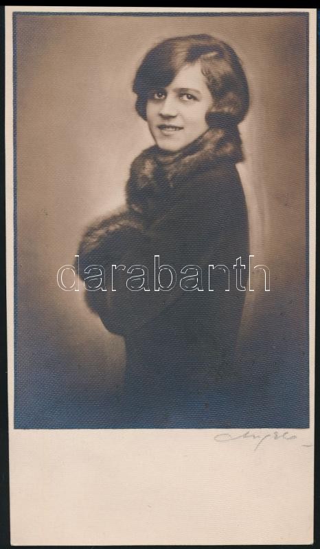 Leírás: cca 1930 Angelo (1894-1974) budapesti fényképész és fotóművész aláírt, vintage műtermi fotója, 12,5x7,3 cm