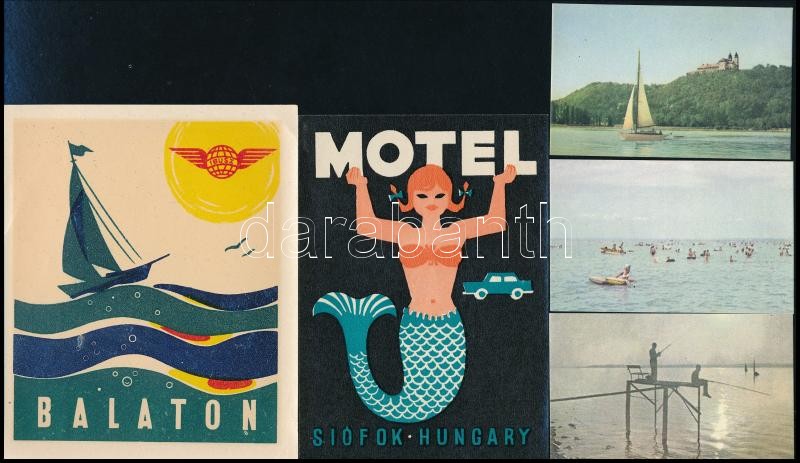 Leírás: Kis Balatonnal kapcsolatos tétel: bőröndcímke, Képzőművészeti Vállalat kis kártyái, összesen: 19 db