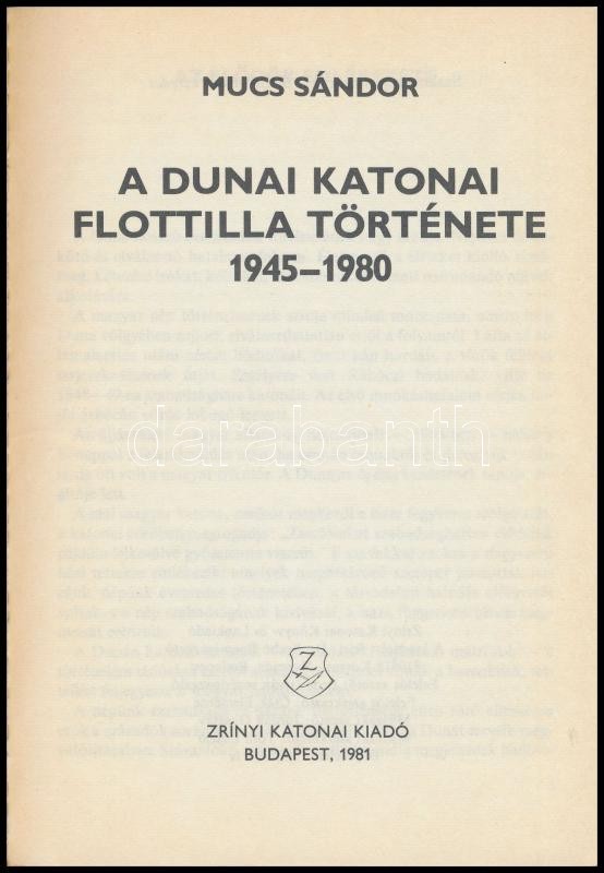 Leírás: Mucs Sándor: Flottilások. A Dunai Katonai Flottila története 1945-1980. Bp., 1981 Zrínyi