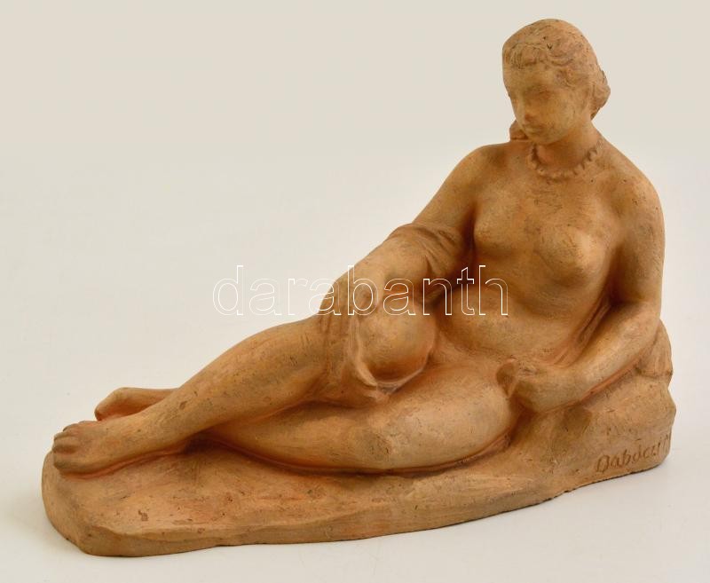 Leírás: Dabóczi Mihály (1905-1980): Fekvő akt. Mázas kerámia, jelzett, 24x19 cm