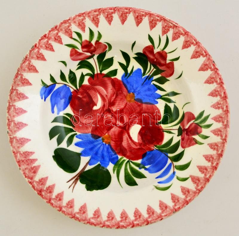Leírás: Hollóházi kerámia falitál, kézzel festett, jelzett, lepattanásokkal, d: 23,5 cm