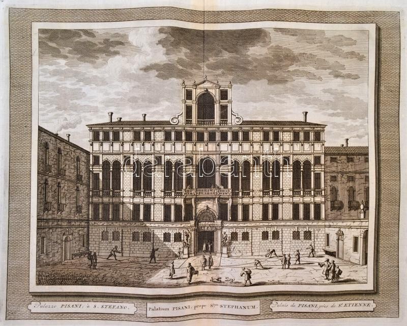 cca 1715-1750 Domenico Lovisa (1690 k.-1750 k.): Velence: Palatium Pisani rézmetszet, papír, a szerző Il gran teatro di Venezia c. munkájából, olasz, latin és francia nyelven feliratozva, 28×34,5 cm / cca 1715-1750 Domenico Lovisa (cca 1690-cca 1750): copper etching, paper, from the author's Il gran teatro di Venezia, with notes in Italian, Latin and French, 28×34,5 cm