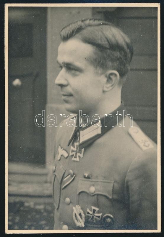 cca 1940 Német tiszthelyettes kitüntetésekkel: vaskereszt, gyalogsági rohamjelvény, stb. / German Wehrmacht NCO with insignia: Iron Cross, Infantry Assault Badge, etc., 9×12 cm