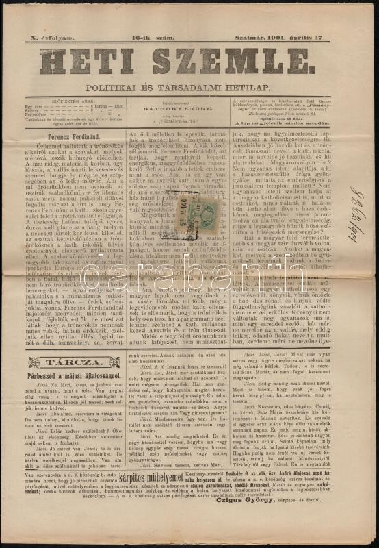 1901 a Heti szemle, szatmári politikai és társadalmi hetilap 10. évf. ... https://www.darabanth.com/hu/325-Gyorsarveres/325.0/Festmeny-mutargy-papirregiseg-egyeb/Nyomtatvanyok~29/1901-a-Heti-szemle-szatmari-politikai-es-tarsadalmi-hetilap-10-evf-16-lapszama-erdekes-i~II1810128