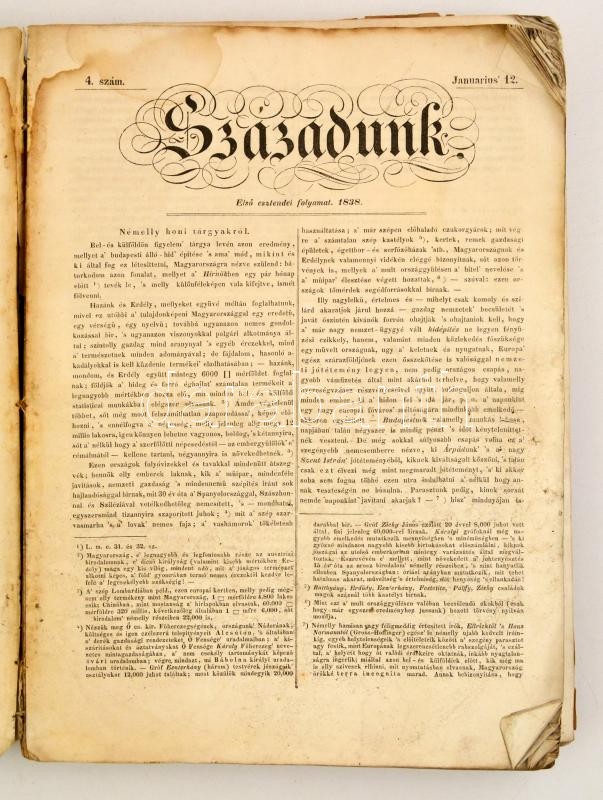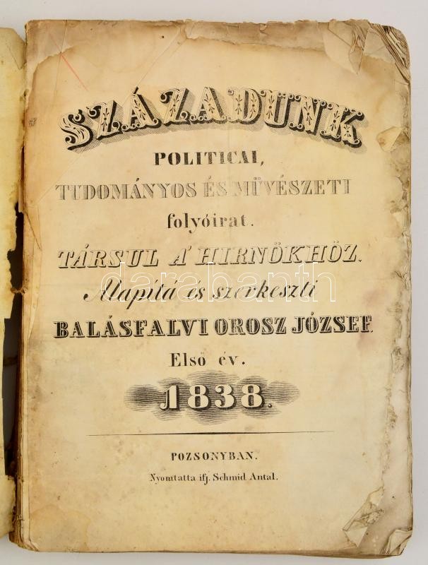Századunk. Politicai, Tudományos És Művészeti Folyóirat.: Társul a' Hírnökhöz. Alapítá és szerkeszti Balásfalvi Orosz József. Első év. 1-104. szám. Teljes évfolyam.