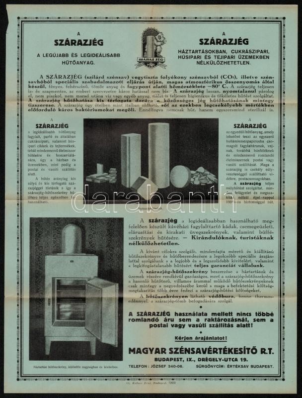 cca 1930 Bp. IX., Magyar Szénsavértékesítő Rt. szárazjég reklámja, haj... https://www.darabanth.com/hu/325-Gyorsarveres/325.0/Festmeny-mutargy-papirregiseg-egyeb/Nyomtatvanyok~29/cca-1930-Bp-IX-Magyar-Szensavertekesito-Rt-szarazjeg-reklamja-hajtott~II1807912