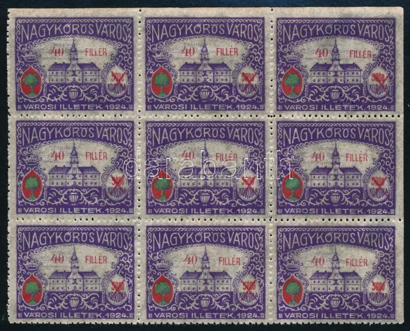 Leírás: 1928-1933 5 db klf Nagykőrösi városi illetékbélyeg 9-es tömbökben