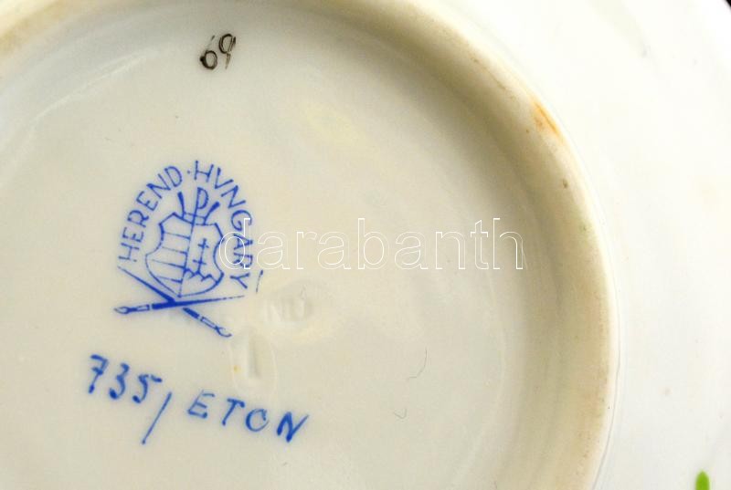 Leírás: Herendi Eton mintás porcelán mokkás csésze aljak, 2 db, kézzel festett, jelzett, hibátlan, d: 11,5 cm.