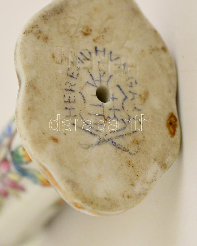 Leírás: Herendi mini porcelán tárgyak, 2 db, tyúk és pecsétnyomó, kézzel festett, jelzett, kissé kopott aranyozással, m: 2 és 4,5 cm