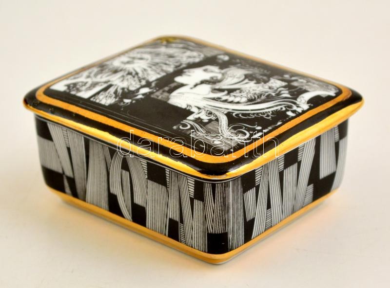 Leírás: Hollóházi Szász Endre által tervezett mintával díszített porcelán dobozka, jelzett, hibátlan, 9x7,5x4 cm
