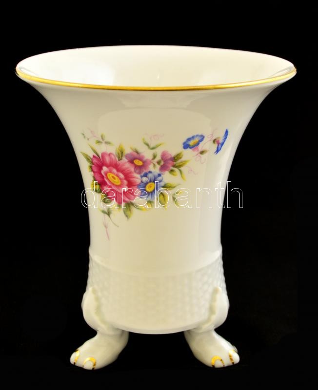 Leírás: Holloházi virág mintás karmos váza, matricás, jelzett, hibátlan, m: 15,5 cm
