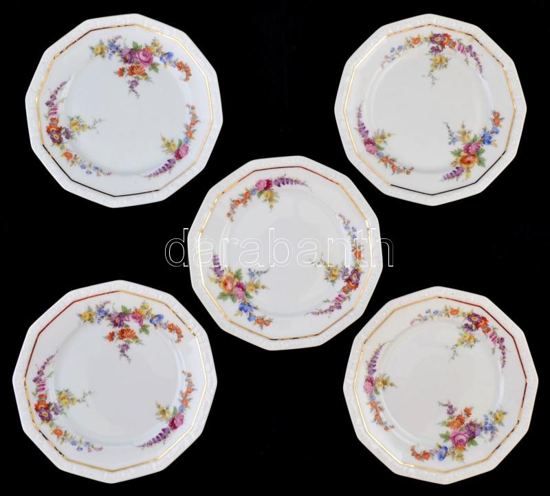 Leírás: Rosenthal virágmintás süteményes tányér, 5 db, matricás, jelzett, hibátlan, d: 17 cm