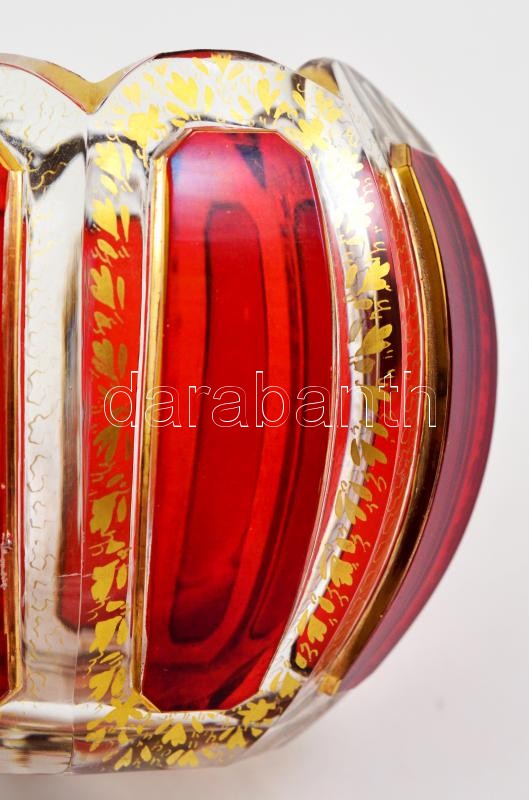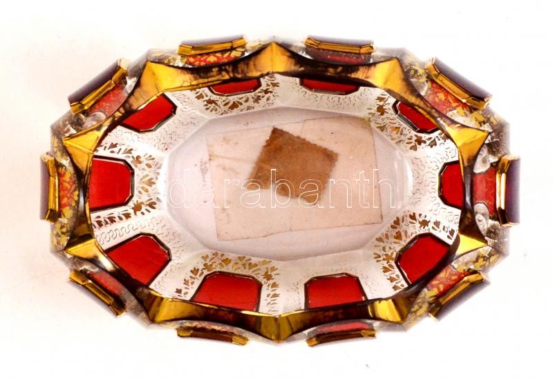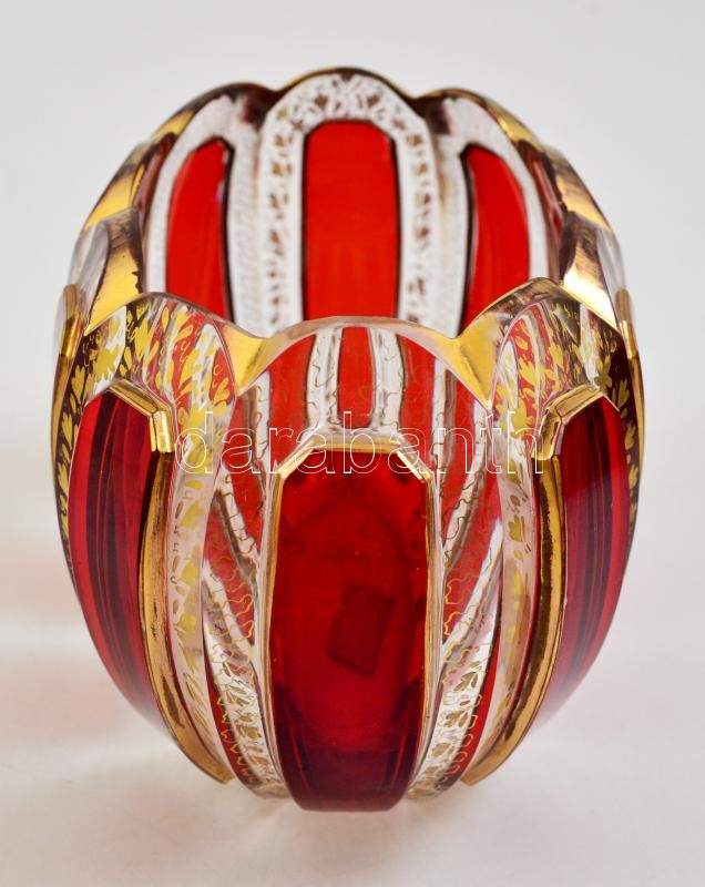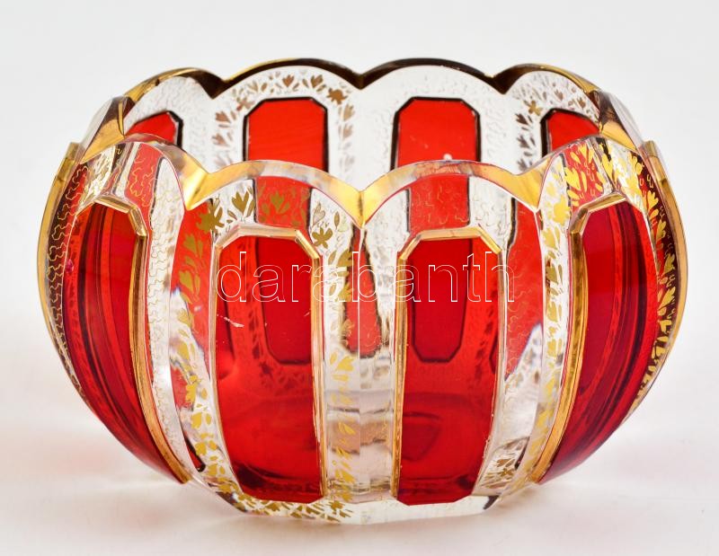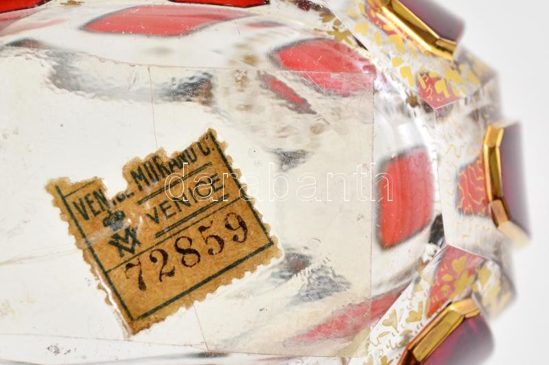 cca 1910 Venezia-Murano Company ovális jardinier, rubinpácos, kézzel festett aranyozással, kopott, karcolással, jelzett, 12×7 cm, m:8 cm /