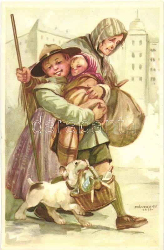 Leírás: A cserkész ahol tud, segít. Cserkész levelezőlapok kiadóhivatal / Hungarian scout boy art postcard s: Márton L.