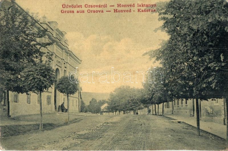 1909 Orsova, Honvéd laktanya. W.L. 1517. / military barracks (fl) https://www.darabanth.com/hu/325-Gyorsarveres/325.0/Kepeslapok/Erdely~2500005/1909-Orsova-Honved-laktanya-WL-1517-military-barracks-fl~II1809039
