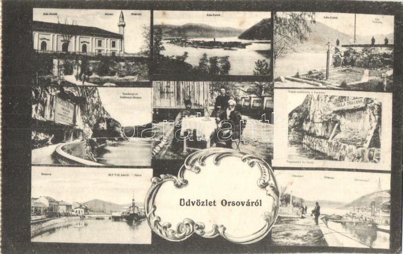 Leírás: Orsova, Ada-Kaleh, Mecset, kikötő, Duna part, Széchenyi út / mosque, port, gorge