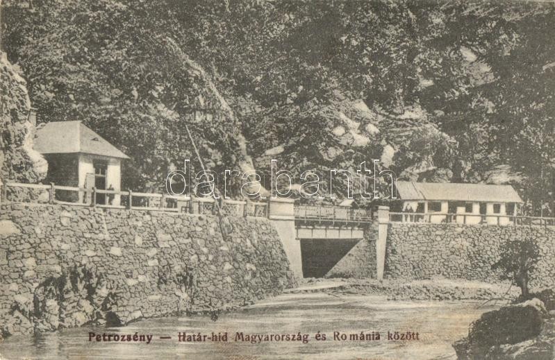 Petrózsény, Petrosani; Határhíd Magyarország és Románia között, sorompó. Mittelmann Jakab és Leitner Ignácz kiadása / border-bridge between Hungary and Romania, barrier (EK)