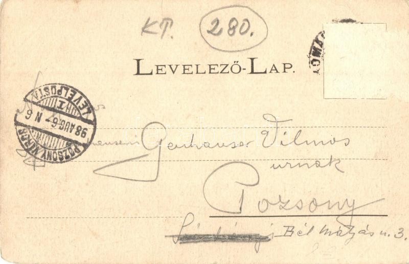 Leírás: 1898 Komárom, Komárno; látkép, templom. Spitzer Sándor kiadása / general view, church (Rb)