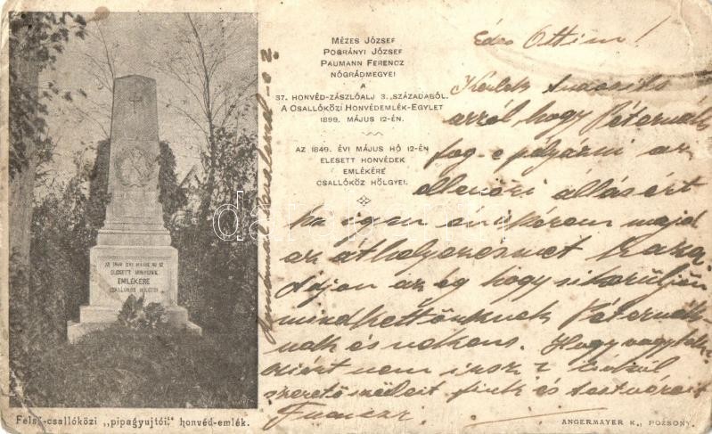 1899 Somorja, Samorín; Felső-Csallóközi "Pipagyújtói" honvéd... https://www.darabanth.com/hu/325-Gyorsarveres/325.0/Kepeslapok/Felvidek~2500006/1899-Somorja-Samorin-Felso-Csallokozi-Pipagyujtoi-honved-emlekmu-az-1849-ben-elesett-ho~II1757769