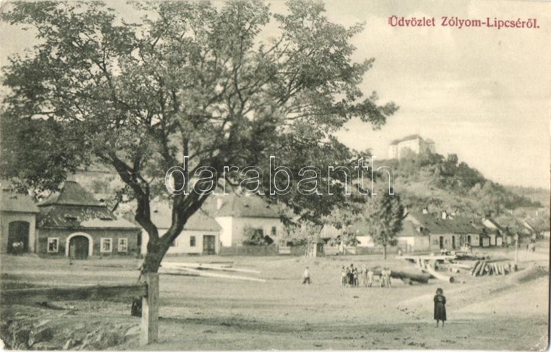 Leírás: 1906 Zólyomlipcse, Slovenská Lupca; tér háttérben a Gizella árvaházzal. Lechnitzky O. 222. / square with orphanage in the background (EK)