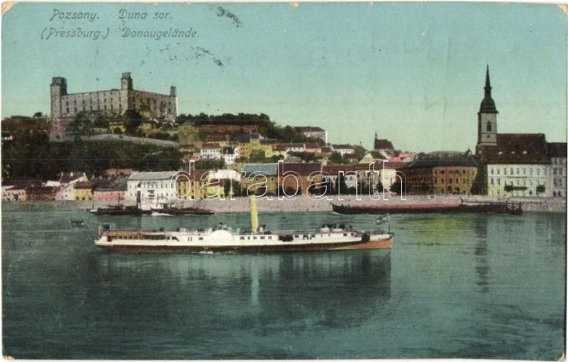 1911 Pozsony, Pressburg, Bratislava; Duna sor, vár, gőzhajó / Danube, ... https://www.darabanth.com/hu/325-Gyorsarveres/325.0/Kepeslapok/Felvidek~2500006/1911-Pozsony-Pressburg-Bratislava-Duna-sor-var-gozhajo-Danube-castle-steamship-EK~II1804906