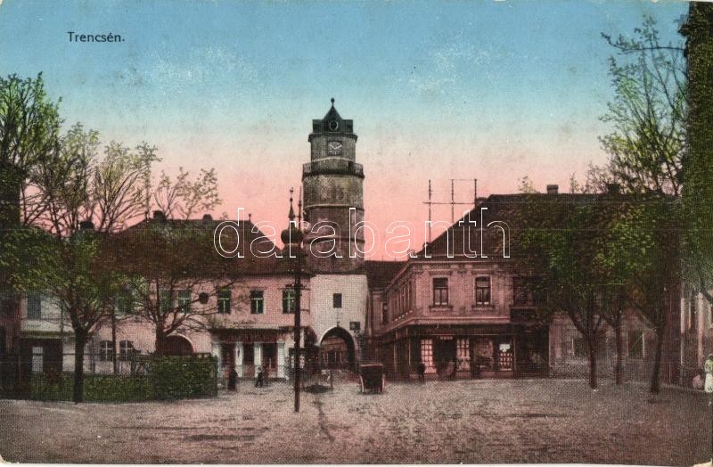 1914 Trencsén, Trencín; Torony utca, Várostorony, Klein Béla üzlete / ... https://www.darabanth.com/hu/325-Gyorsarveres/325.0/Kepeslapok/Felvidek~2500006/1914-Trencsen-Trencin-Torony-utca-Varostorony-Klein-Bela-uzlete-street-view-with-tower-s~II1809199