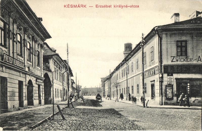 Késmárk, Kezmarok; Erzsébet királyné utca, Freyer vendéglője, Poprádi ... https://www.darabanth.com/hu/325-Gyorsarveres/325.0/Kepeslapok/Felvidek~2500006/Kesmark-Kezmarok-Erzsebet-kiralyne-utca-Freyer-vendegloje-Popradi-Sorraktar-rt-Zwick~II1809396