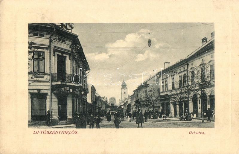 Liptószentmiklós, Liptovsky Mikulas; Úri utca, Lerchenfeld Gyula üzlete, Római katolikus templom. W. L. Bp. 2514. / street view, shops, Roman Catholic church (EK)