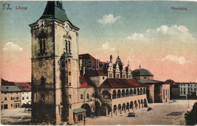 Lőcse, Levoca; Városháza, tér / town hall, square https://www.darabanth.com/hu/325-Gyorsarveres/325.0/Kepeslapok/Felvidek~2500006/Locse-Levoca-Varoshaza-ter-town-hall-square~II1809211