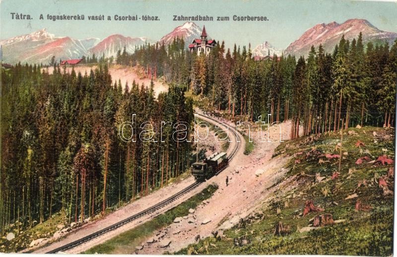 Tátra, Tatry; Fogaskerekű vasút a Csorba-tóhoz. Kiadja Feitzinger Ede ... https://www.darabanth.com/hu/325-Gyorsarveres/325.0/Kepeslapok/Felvidek~2500006/Tatra-Tatry-Fogaskereku-vasut-a-Csorba-tohoz-Kiadja-Feitzinger-Ede-Ph-No-4-Zahnradbahn-z~II1810233